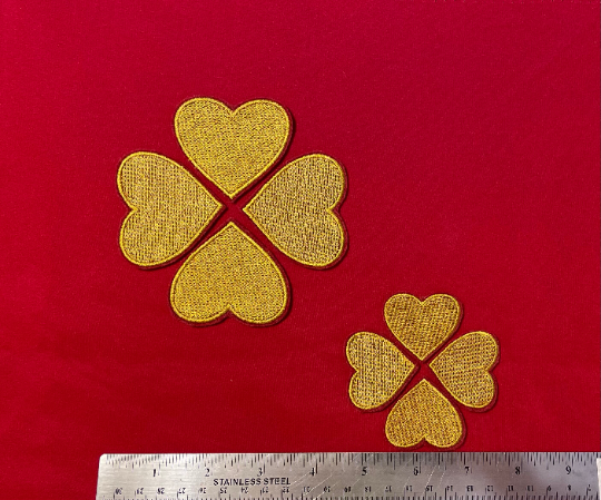 Apron patch is 4.5" x 4.5" with all heart pieces combined, individually they are 2" w x 2.3" h