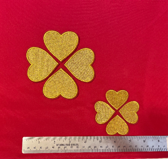 Hat patch is 3" x 3" with all heart pieces combined, individually they are 1.5" w x 1.5" h